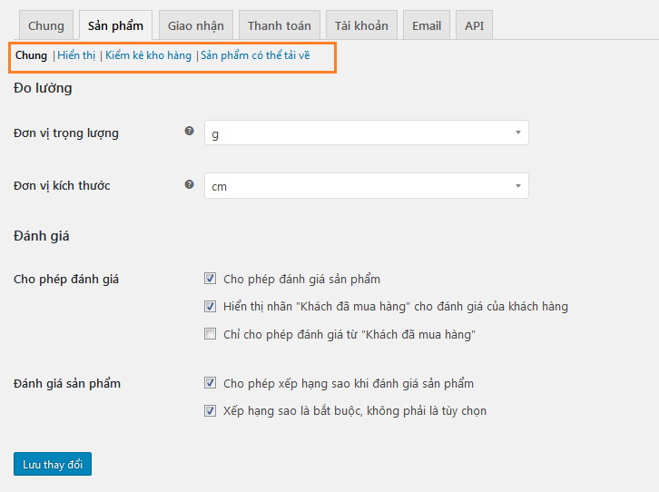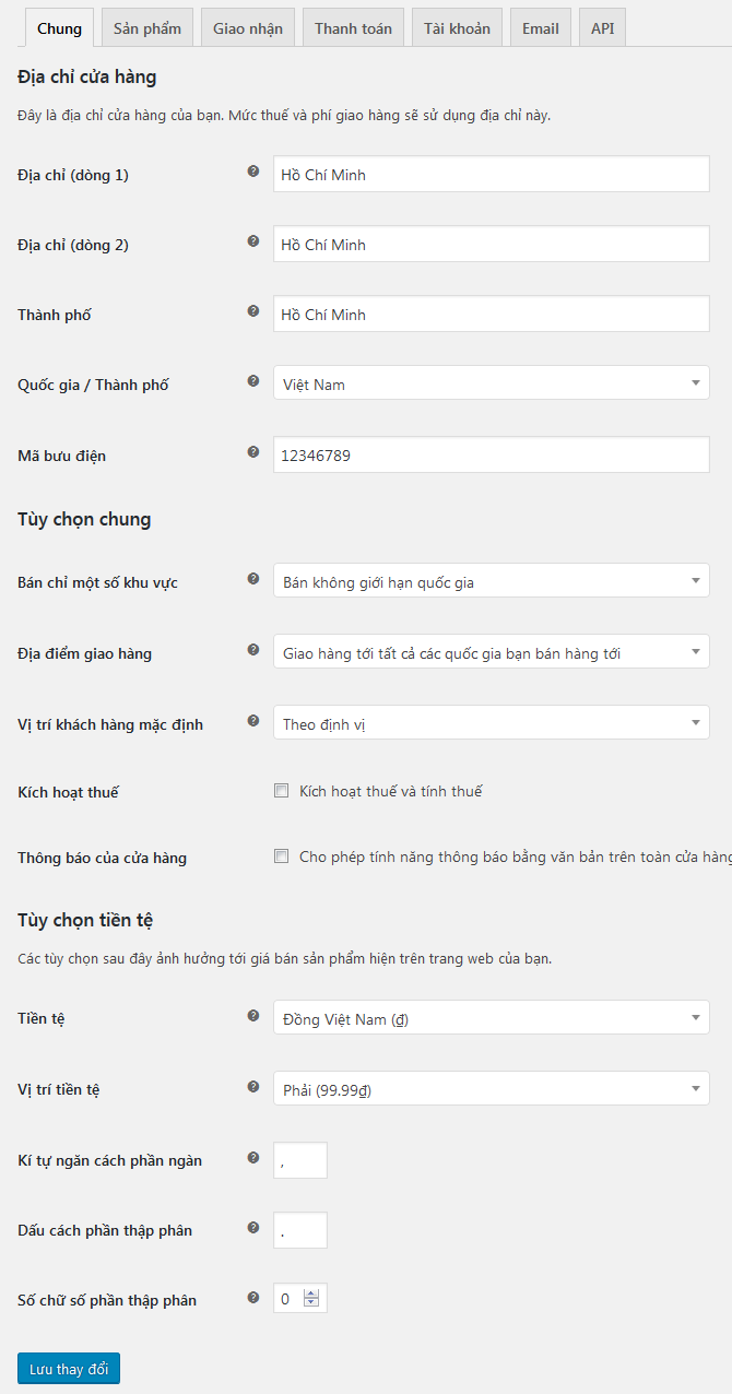 Cài đặt chung – cài đặt trong woocommerce