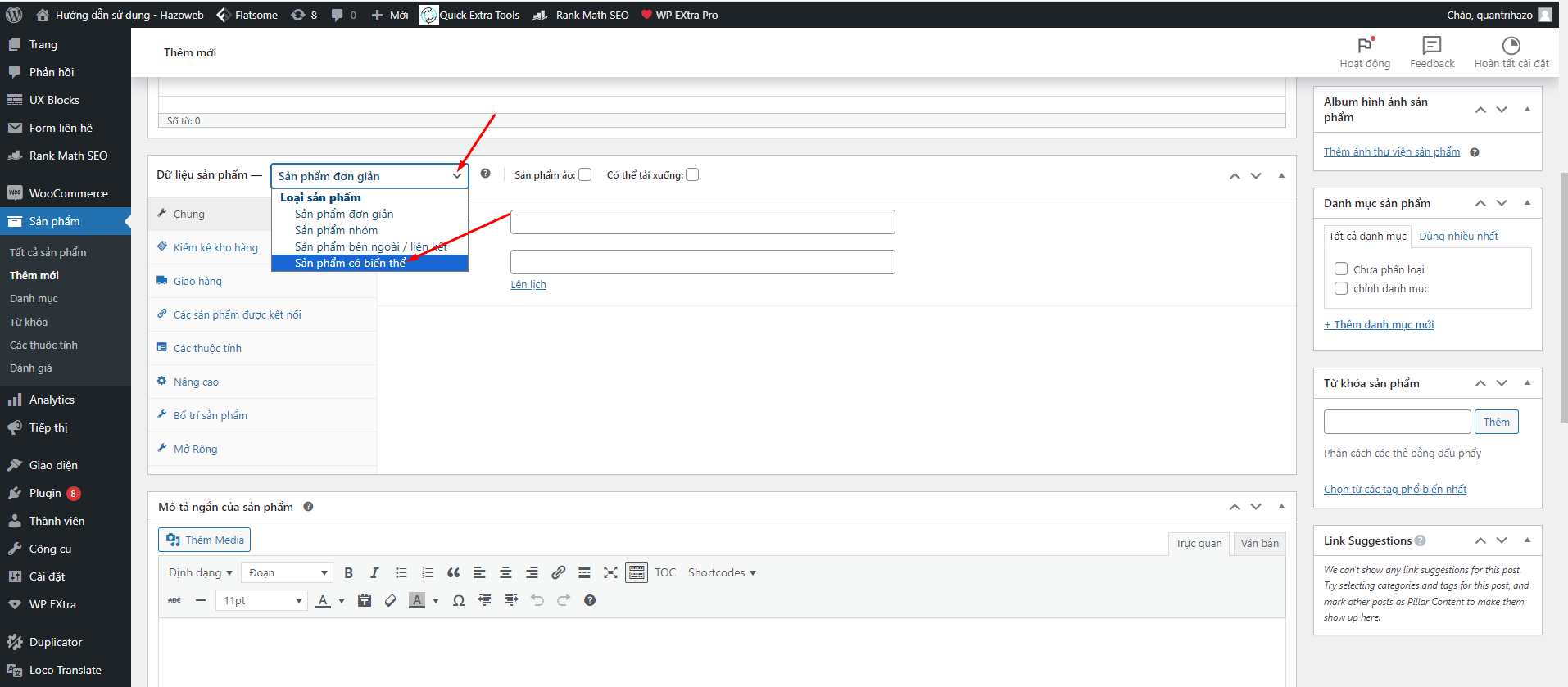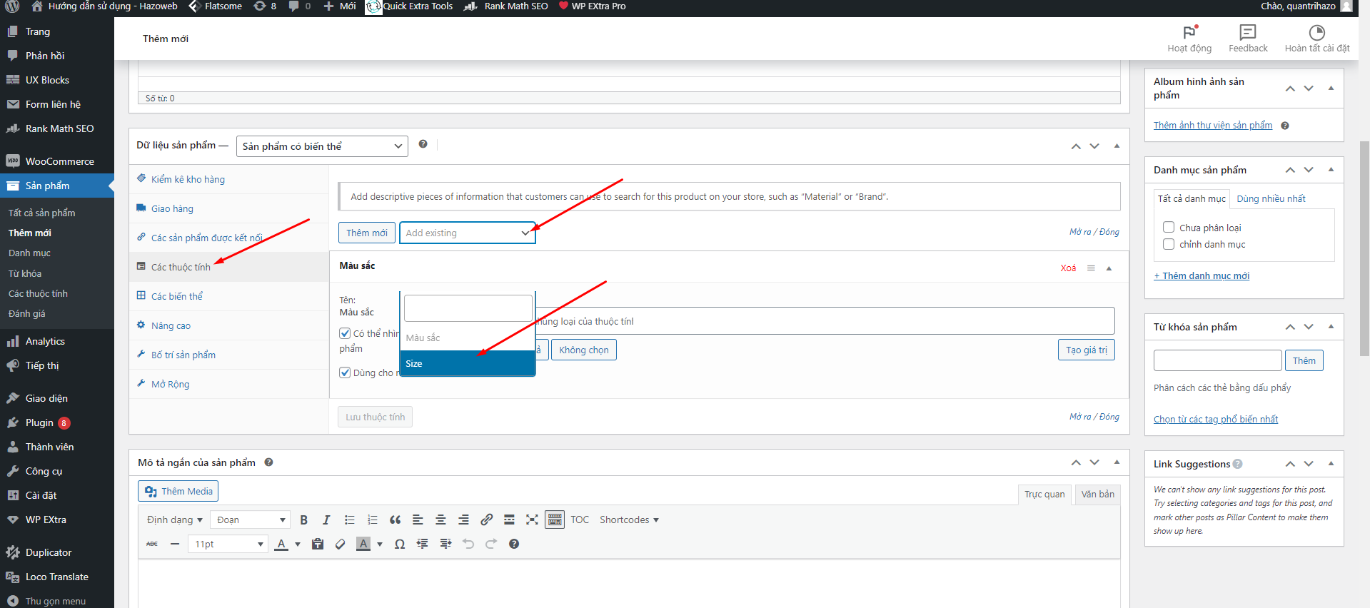 Đăng phần biến thể (trước đó đã tạo các thuộc tính) của sản phẩm