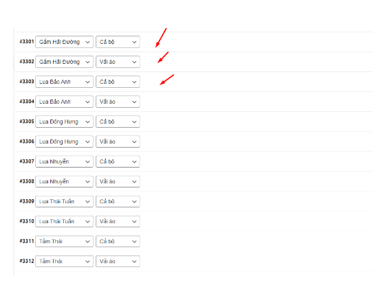 B4. Sau khi thêm xong nhấn vào khoảng trống của mỗi biến thể vừa thêm để mở ra chọn