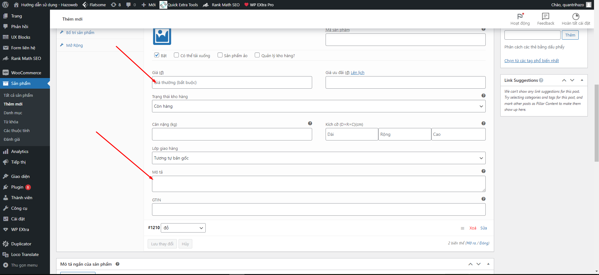 Đăng phần biến thể của sản phẩm (chi tiết mỗi sản phẩm)