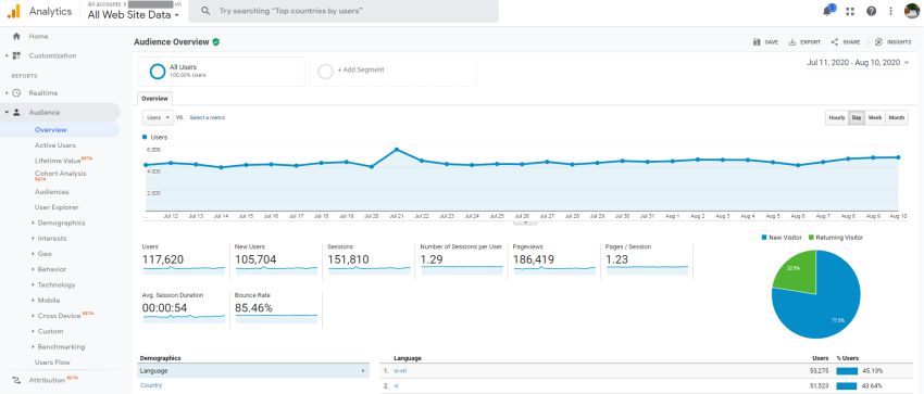 Google Analytics báo cáo lưu lượng truy cập website, thời gian truy cập trung bình và tỷ lệ thoát khỏi trang web của người dùng. Ngoài ra, Google Analytics cũng đưa ra nhiều những chỉ số khác, giúp bạn nắm rõ hành vi lướt web của người dùng.