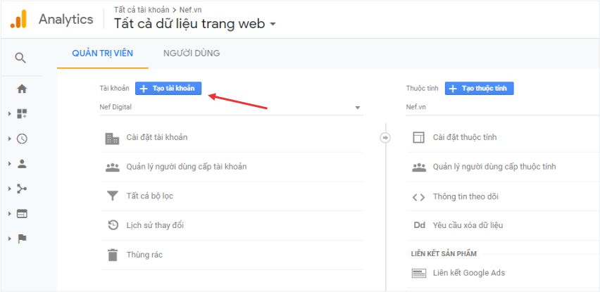 Đây không phải là tài khoản google mà là thực thể cấp cao nhất của Google Analytics mà bạn có thể tạo. Mỗi tài khoản chứa tới 50 thuộc tính. Tuy nhiên, ít ai cần dùng đến số lượng thuộc tính nhiều đến thế. Bạn cần sắp xếp những thuộc tính sao cho thật hiệu quả và đơn giản nhất.