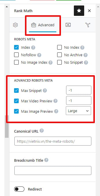 Bạn có thể thực hiện các thao tác sau nếu đang sử dụng plugin Rank Math: