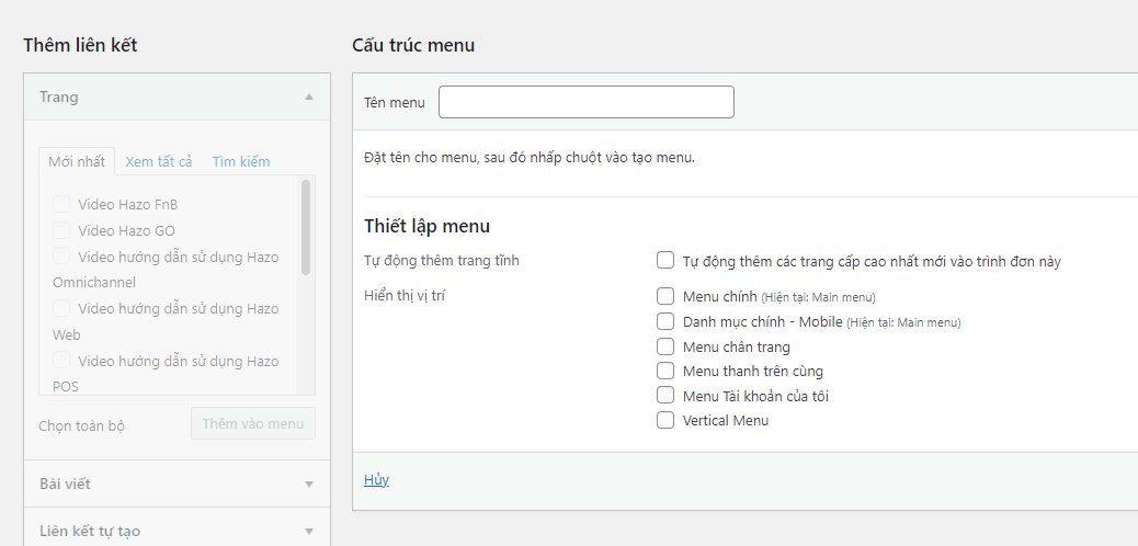 Thiết lập menu cấp 2 Bước 1: Vào giao diện Menu Bước 2: tạo menu Bước 3: kéo menu lùi lại thành menu con